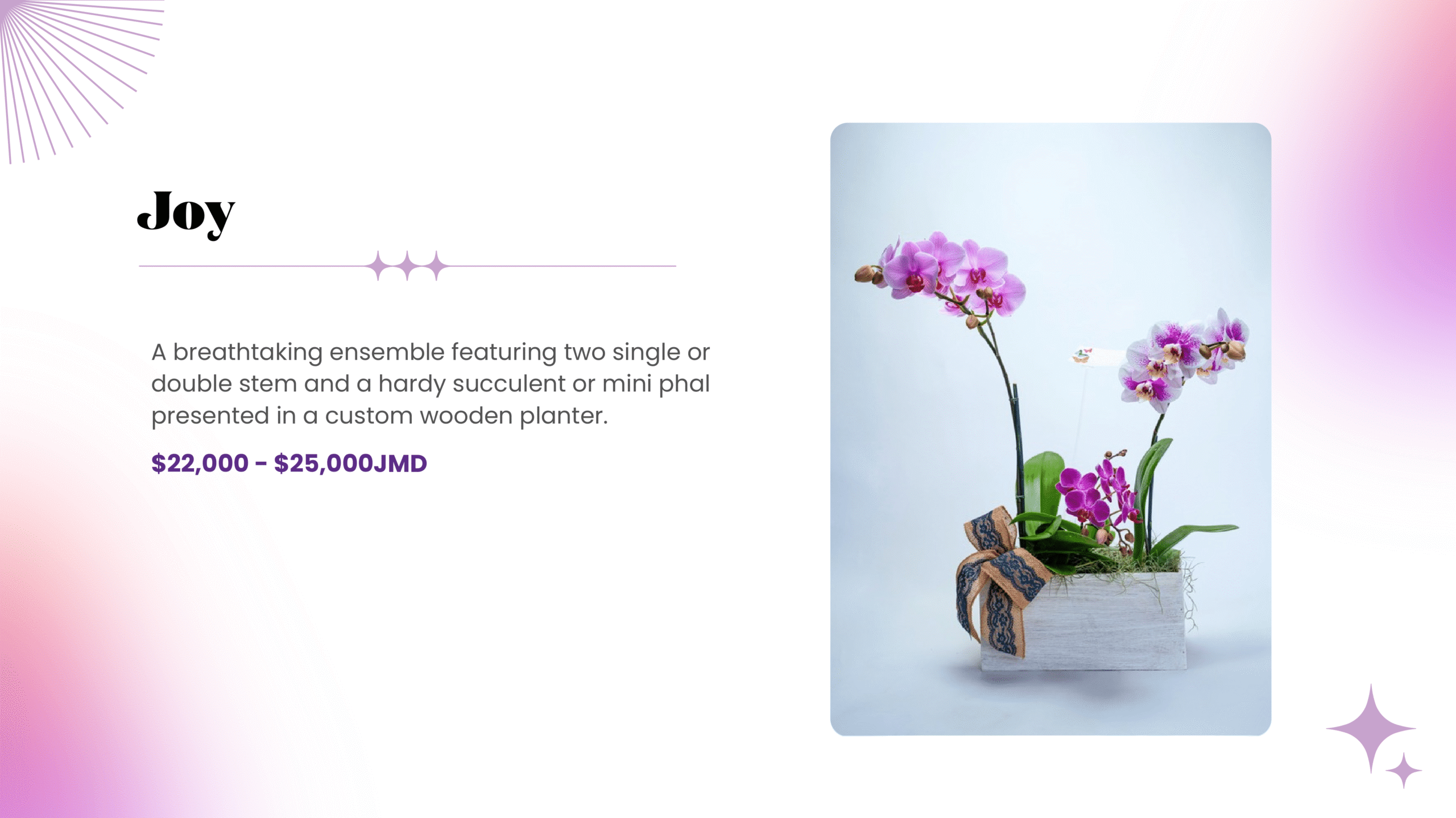 Founded in March 2011, Beautiful Blooms is a family-operated orchid nursery rooted in the scenic hills of St. Andrew, Jamaica. Born from a deep love for plants and a desire to spread joy, we specialize in cultivating orchids and houseplants that are as vibrant and unique as the people who receive them.